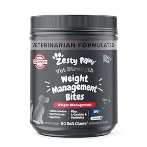 Zesty Paws Weight Management Bites for Dogs – Veterinarian Formulated – Metabolism & Appetite Control – L-Carnitine, Fiber, Postbiotics & B Vitamins – Healthy Weight Dog Supplement – 90 Count