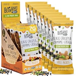 BeanVIVO Plant Based Protein Snacks – Dill Pickle Flavor with Dried Edamame, Roasted Cashew and Chickpeas – Non-GMO Crunchy Salad Toppers – High-Protein and Rich in Fiber – 8Pack (1.05 oz Each Pouch)